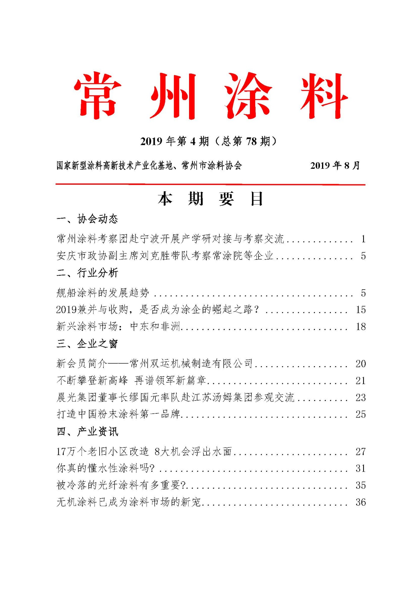 常州涂料簡報2019年第4期(總第78期)